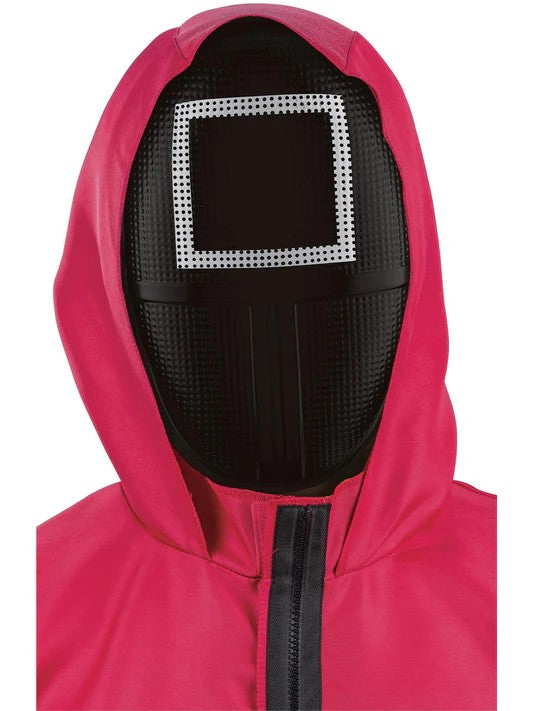 • The Front Man, who controls the games, wears a black, angular mask with no eyeholes, representing power and control